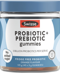 Swisse Adults Probiotic & Prebiotic Gummies are the fun, fruity way to support your dietary probiotic intake. Each serving delivers 3 billion CFU of probiotics per daily serve and natural prebiotic fibre from chicory root, to feed the good bacteria in your gut. These naturally orange-tasting gummies, contain no added sugar or artificial sweeteners and are perfect for those seeking a fridge-free, convenient probiotic gummy. Embrace a gut-friendly lifestyle with these tasty, vegan-friendly gummies.