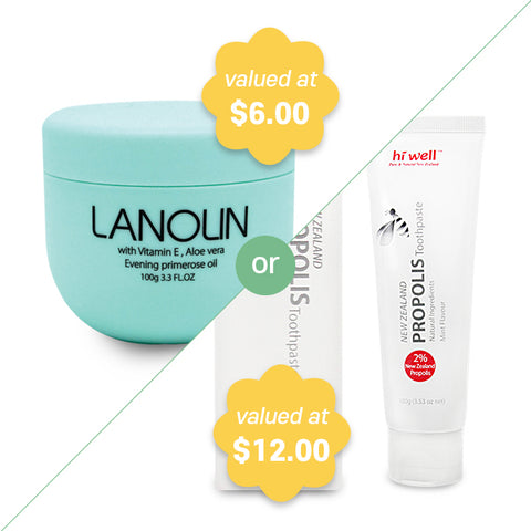 OVER $100B&I Lanolin with Vitamin E Cream 100g or Hi Well 2% Propolis Toothpaste 100g