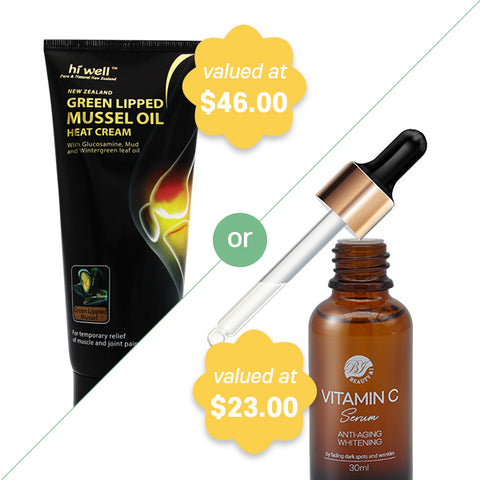 OVER $300Hi Well New Zealand Green Mussel Oil Heat Cream 200g or B&I Vitamin C Serum 30ml