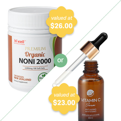 OVER $300Hi Well Premium Organic Noni 2000 100 Softgels (Exp.06/2026) or B&I Vitamin C Serum 30ml